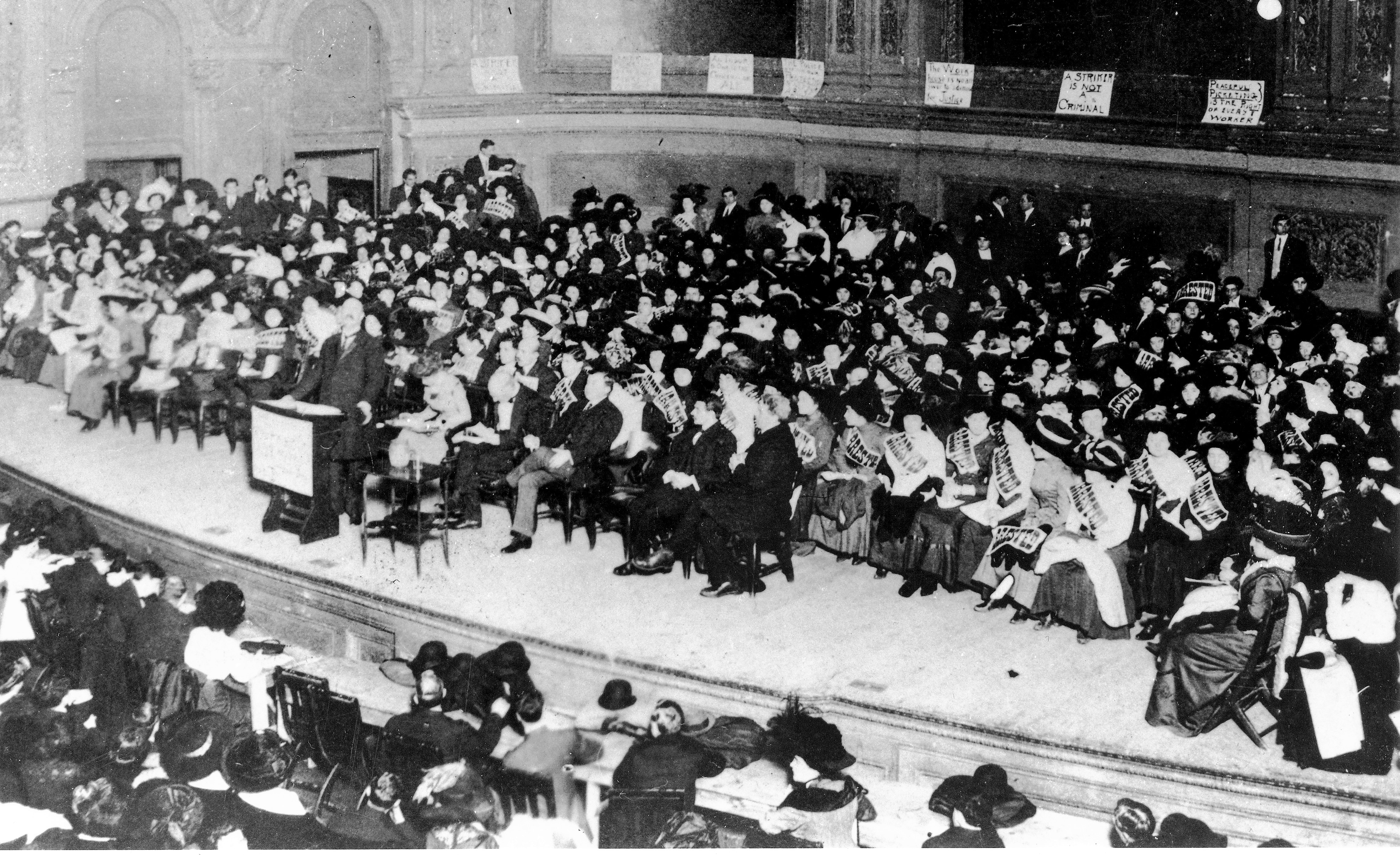 The speakers, one after the other, argued about the possibilities of victory and discussed the methods of employers. In the midst of these speeches Clara Lemlich, a dark, pale little girl of about 20, raised her hand to show her desire to speak. She was called upon, and willing hands lifted her on the platform. With the simplicity of genius she said: