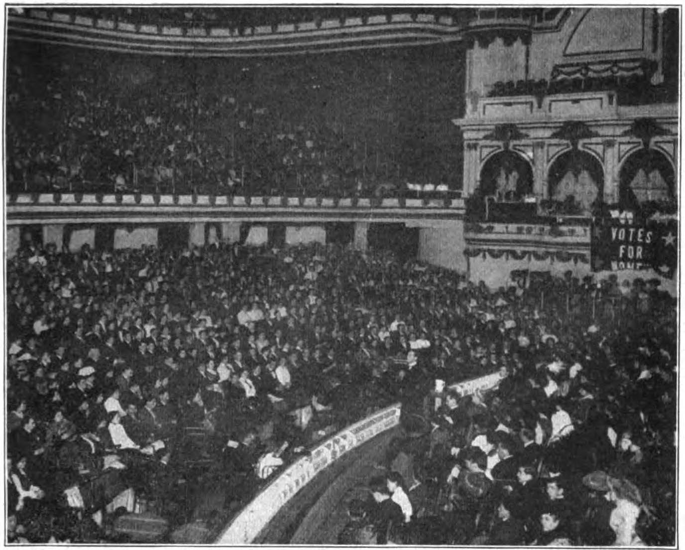 If public opinion alone could win a strike, this one would surely be won, for the dramatic qualities and beauty of this first battle of women workers has not failed to escape every class except those who are financially interested in their defeat. The woman’s suffrage movement seems to be eager to help them (though it doesn’t forget to help itself in the meantime), and Mrs. Belmont, on December 5th, hired the Hippodrome, the largest theatre in the city of New York, for the purpose of having the story of the strikers told and spreading sympathy for them among all classes and to teach them women’s suffrage. Mrs. Rose Pastor Stokes and Leonora O’Reilly represented the Socialist and union point of view, and Dr. Anna H. Shaw spoke as a woman suffragist, with the cause of the working girls in her heart. The Colony Club, that most exclusive and fashionable women’s club in the city, with Mrs. Egerton Winthrop and Miss Anne Morgan as hostesses, has invited these girls, for the purpose of hearing their story and spreading it to the public.