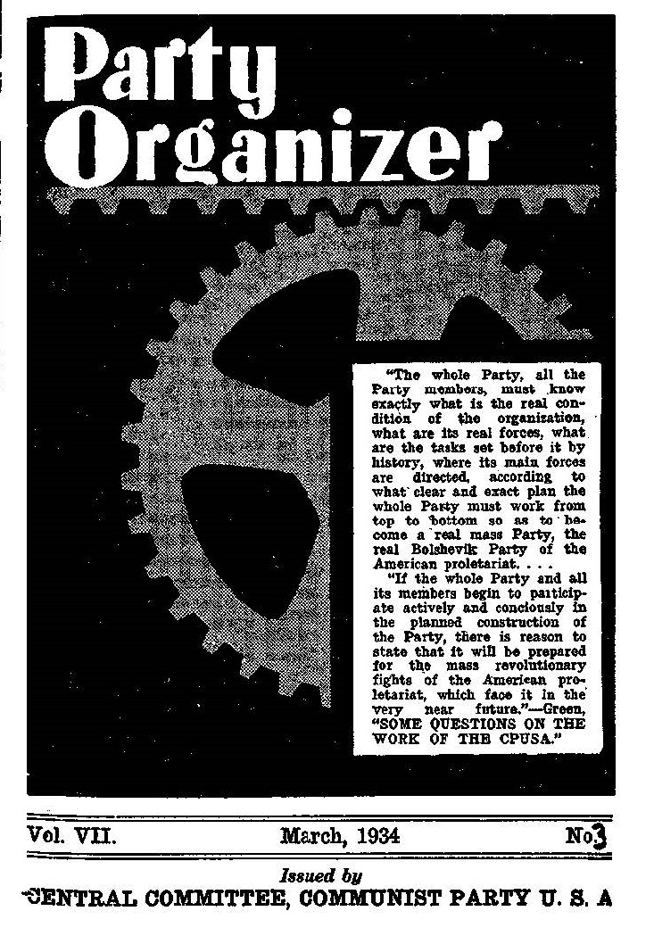 The Party Organizer was the internal bulletin of the Communist Party published by its Central Committee beginning in 1927. First published irregularly, than bi-monthly, and then monthly, the Organizer was primarily meant for the Party’s unit, district, and shop organizers. The Organizer offers a much different view of the CP than the Daily Worker, including a much higher proportion of women writers than almost any other CP publication. Its pages are often full of the mundane problems of Party organizing, complaints about resources, debates over policy and personalities, as well as official numbers and information on Party campaigns, locals, organizations, and periodicals making the Party Organizer an important resource for the study and understanding of the Party in its most important years.