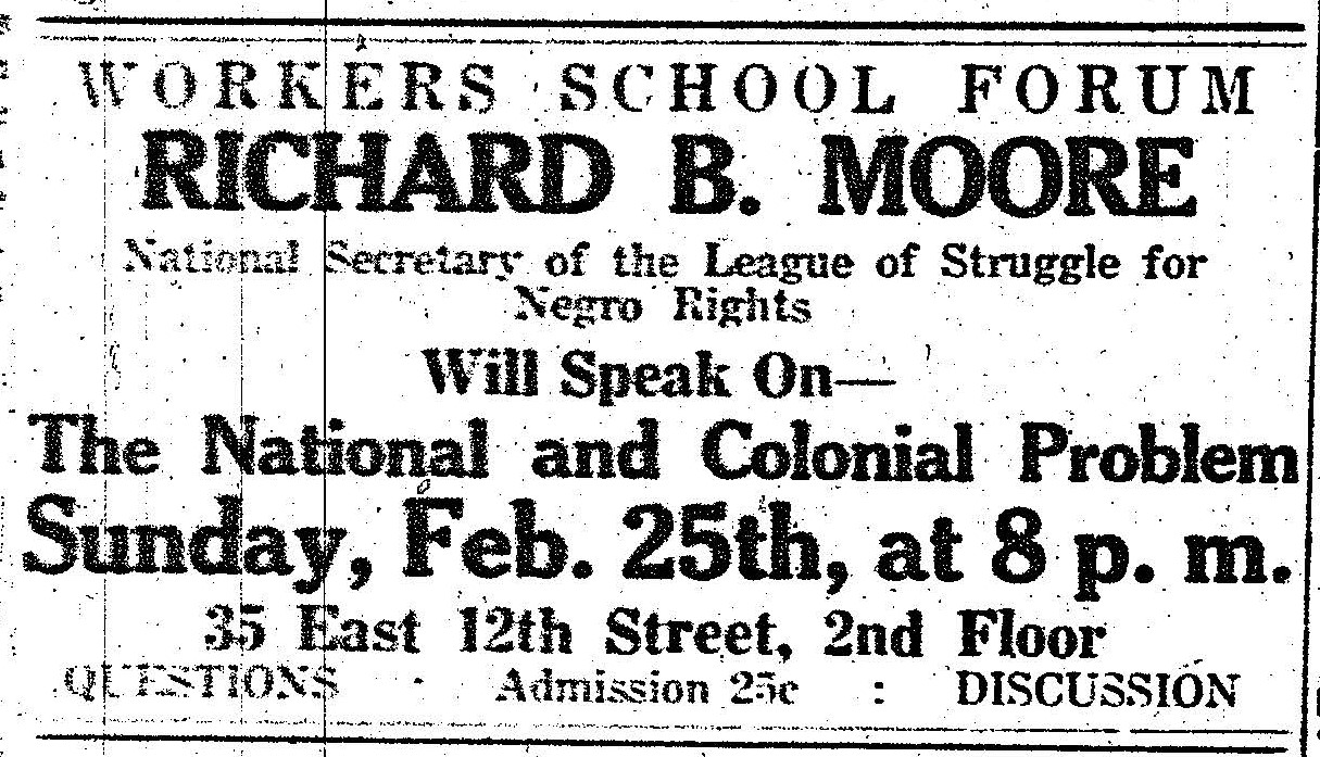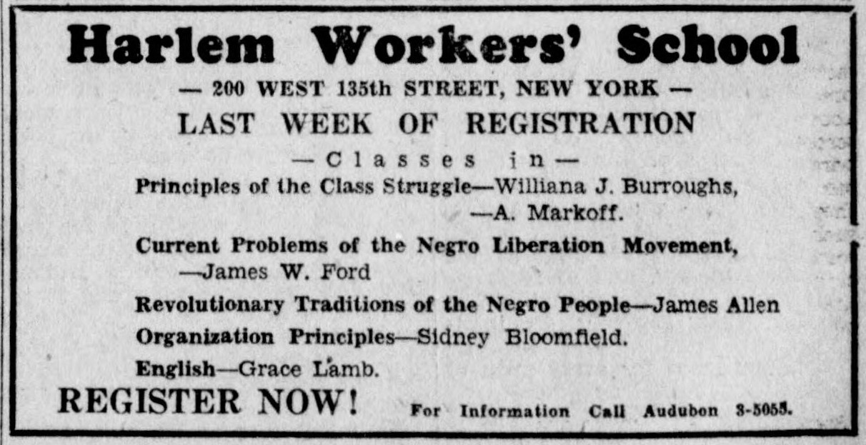 Space does not permit me to elaborate on the other important concentration activities of the Section such as unemployed work, shop work, and the I.L.D. This we will do at some future time. For the present we can say that the introduction of the Group System in Harlem will not only serve to aid us in our struggle against fluctuation. But it will in every way stimulate the activities of the Party. Recruiting can be carried on a real proletarian competition basis. The Harlem Liberator and the Daily Worker sales can be increased tremendously. Functioning fractions can be established in all organizations in the neighborhood and what’s most important, these groups are in a position to concentrate on shops, thereby assuring a broad proletarian base in the liberation movement. The tasks of the white workers not only in Harlem, but throughout the Party, must be the most energetic struggle against white chauvinism not only by exposing hidden or open white chauvinists within the Party, but by boldly bringing forward the question of Negro liberation among the broad masses of white workers, convincing them of the undisputable fact “that labor in a white skin cannot be emancipated as long as labor in a black skin is branded.”