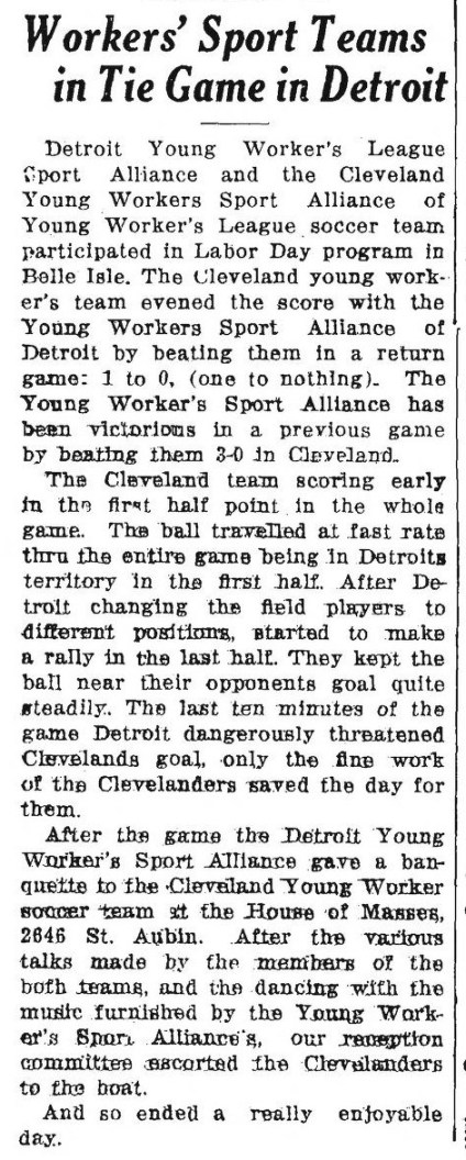 In carrying on the sport work, we must always bear in mind that while it is very important, yet it is only a means and not an end. To permit our sport activity to become an end in itself is to defeat the Communist aims for which we strive. We must realize that sport work is a means to influence large masses of the young workers, to mobilize them for the class struggle and for the ultimate overthrow of capitalist society. It is in the spirit of this realization that our League must devote itself to the task of building the American Section of the Red Sport International, the Workers’ Sport Alliance.
