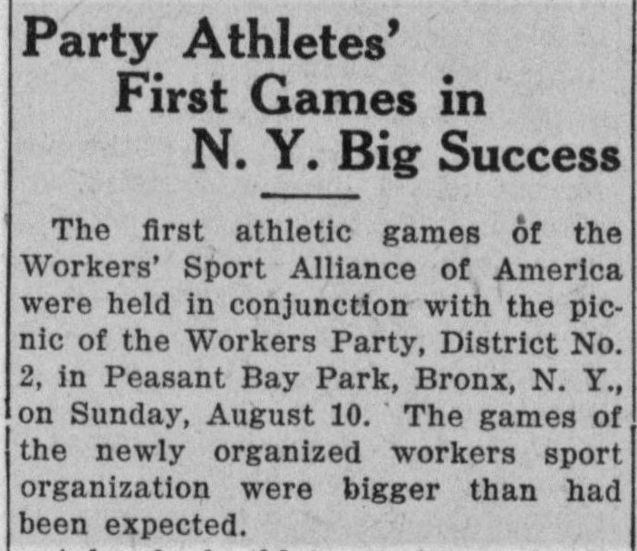 In carrying on the sport work, we must always bear in mind that while it is very important, yet it is only a means and not an end. To permit our sport activity to become an end in itself is to defeat the Communist aims for which we strive. We must realize that sport work is a means to influence large masses of the young workers, to mobilize them for the class struggle and for the ultimate overthrow of capitalist society. It is in the spirit of this realization that our League must devote itself to the task of building the American Section of the Red Sport International, the Workers’ Sport Alliance.