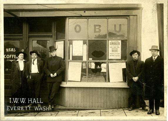 FOUGHT FOR OUR PRIVILEGES. Everett, Wash., passed an ordinance against speaking on the streets. Much to their surprise J.P. Thompson held down a corner on last Saturday night to the largest outdoor audience ever collected in that burg. When he was through the patrolman ordered him to stop. The Everett Labor Journal remarks: “We fail to see where the I.W.W. come in for any lawbreaking privileges.” The answer is direct action. No one respects a cur with its tail between its legs, but all steer clear of a bulldog. Any privileges the I.W.W. have they won by fighting. It takes the fighting spirit to win.
