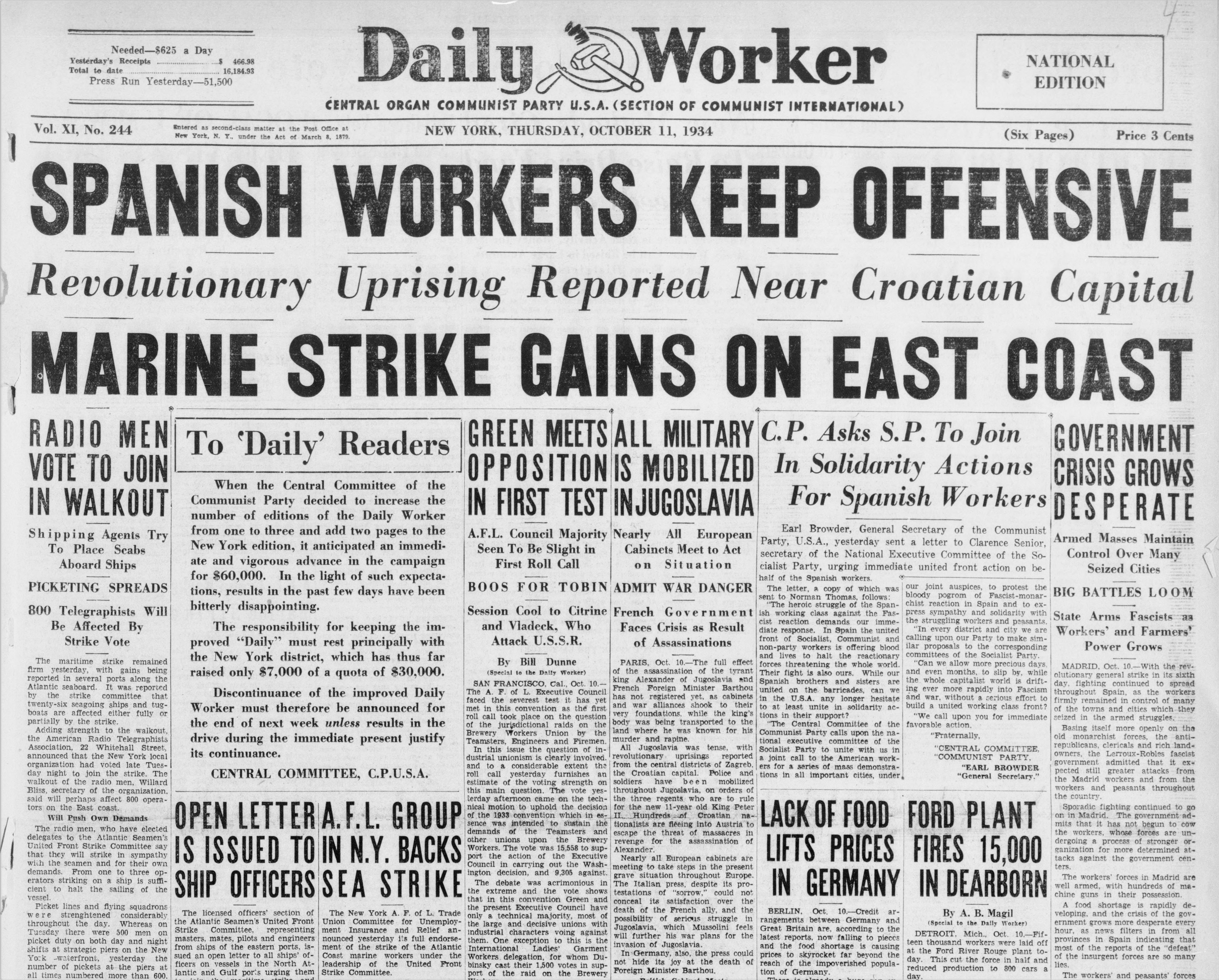 Daily Worker (City Edition). Vol. 11 No. 244. October 11, 1934.