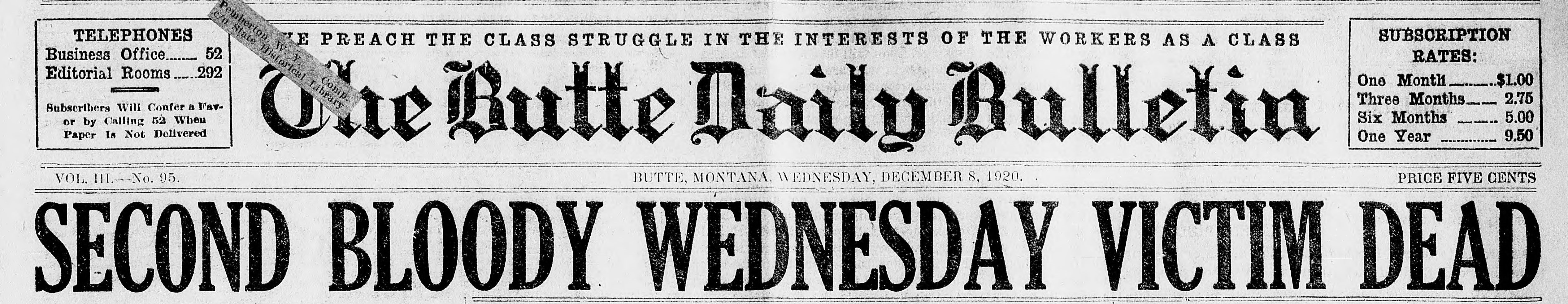 ‘James Sullivan, Second Bloody Sunday Victim Dead’ from The Butte Daily Bulletin (Montana). Vol. 3 No. 95. December 8, 1920.
