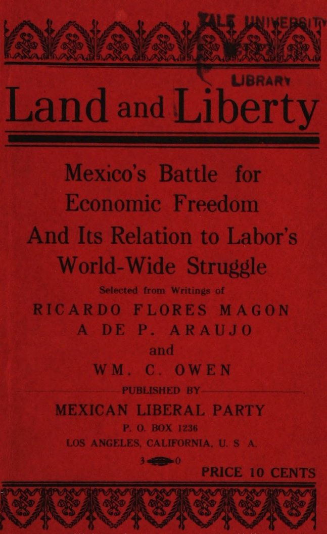 Land and Liberty; Mexico’s Battle for Economic Freedom and Its Relation to Labor’s World-Wide Struggle by Ricardo Flores Magon, Antonio de P. Araujo and Wm. C. Owen. Published by the Mexican Liberal Party, Los Angels. September, 1913.