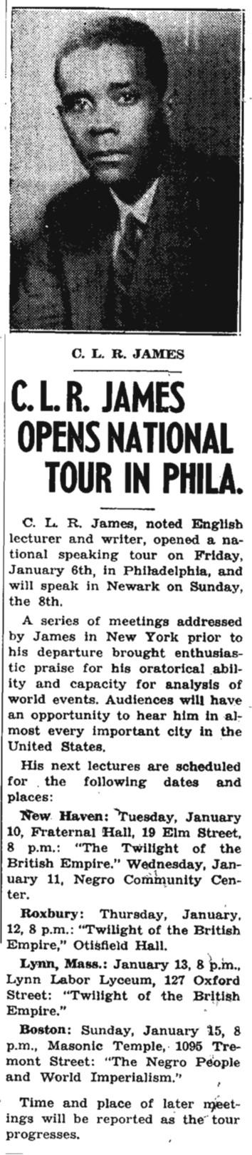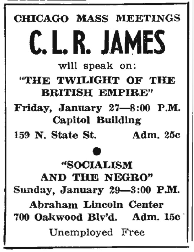 However, many factors are in favor of a victory ultimately for those who support revolutionary socialism, when the Negro masses are ready for it. First there is the question of revolutionary struggle for the Negroes in Africa against imperialism. On this, most politically minded Negroes are agreed. Secondly, the International African Service Bureau, a British organization, issued a Manifesto during the Munich crisis which demands a joint struggle of British workers in Britain and colonials of the Empire for the overthrow of Imperialism. This Manifesto has been warmly welcomed among advanced Negroes in America, and the bureau and its paper, International African Opinion, have already a powerful influence, and this not only on account of its policy, but because it is run by Negroes.