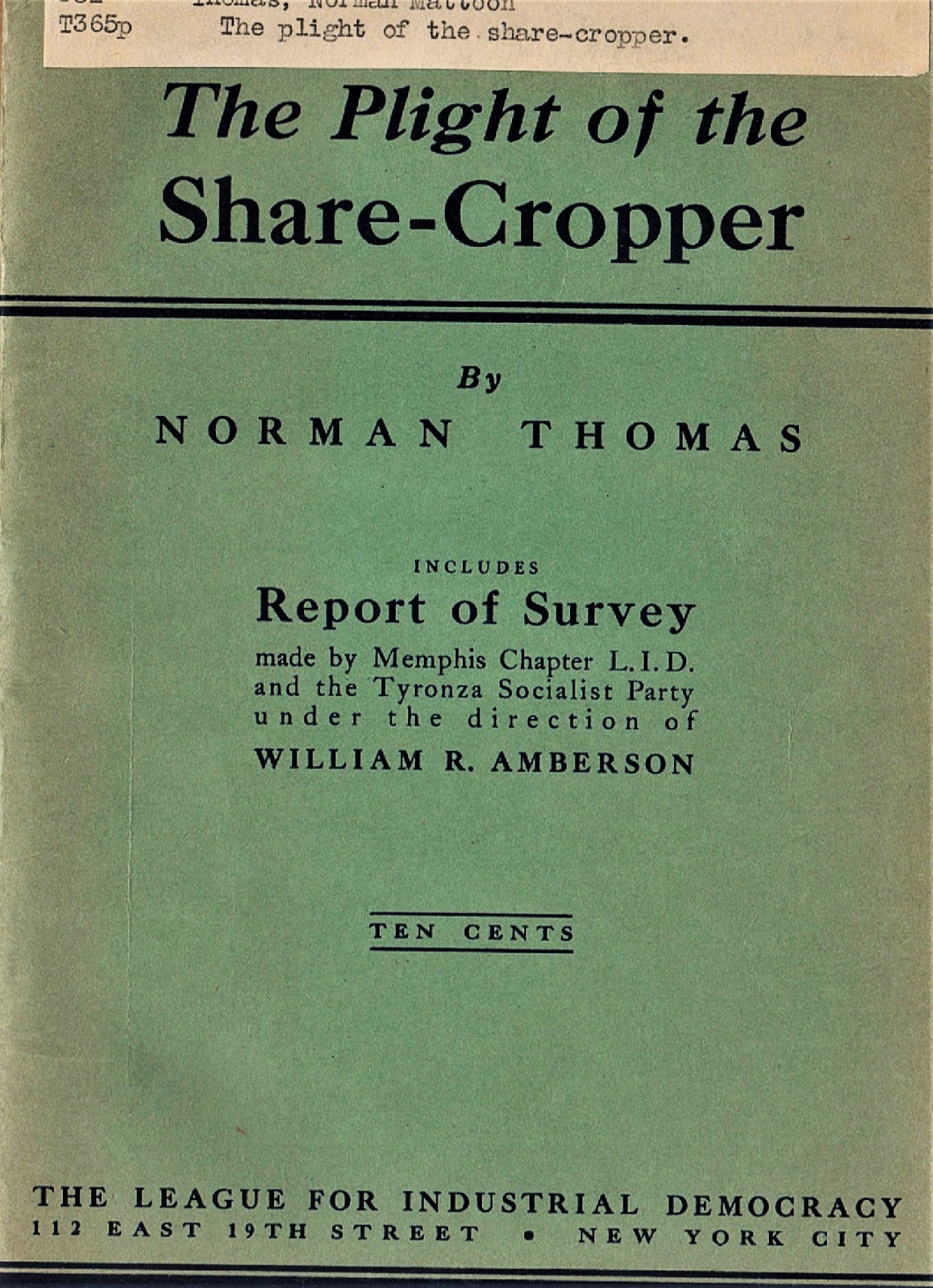 The Plight of the Share-Cropper by Norman Thomas. Published by the League for industrial Democracy, New York. 1934.