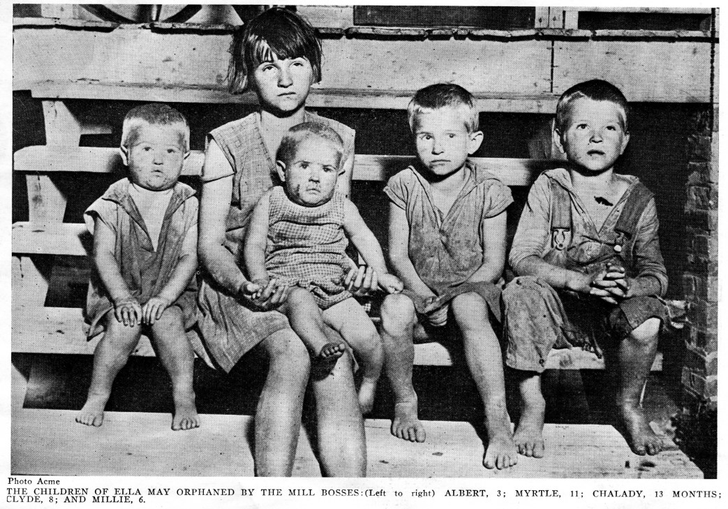 She would tell in union speeches of her struggle in the mill villages. “I never made no more than nine dollars a week, and you can’t do for a family on such money,” she would say. “I’m the mother of nine. Four died with the whooping cough. I was working nights, and I asked the super to put me on days, so’s I could tend ’em when they had their bad spells. But he wouldn’t. He’s the sorriest man alive, I reckon. So I had to quit, and then there wasn’t no money for medicine, and they just died. I couldn’t do for my children any more than you women on the money we git. That’s why I come out for the union, and why we all got to stand for the union, so’s we can do better for our children, and they won’t have lives like we got.”