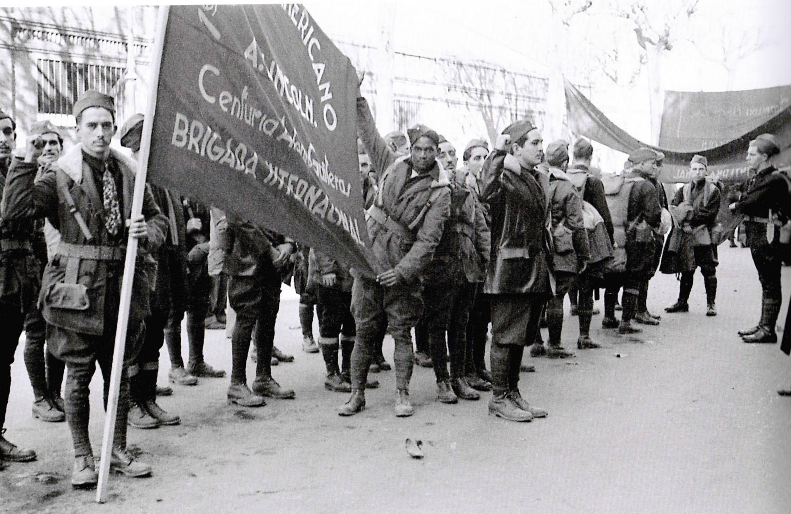 Before leaving for our final training ground, we were addressed by the French commandant, whose speech was translated into four different languages. He spoke briefly. There were two things he asked from us: proletarian discipline and the erasing of political differences during the time we were fighting our common enemy. There was no need, he said, to explain the situation, because had we not known it, we would not have been there. We couldn’t lose, he said, but our sacrifices would have to be many. The bull-ring thundered to the shouts of “Red Front!” in four languages, and we marched to our waiting train.