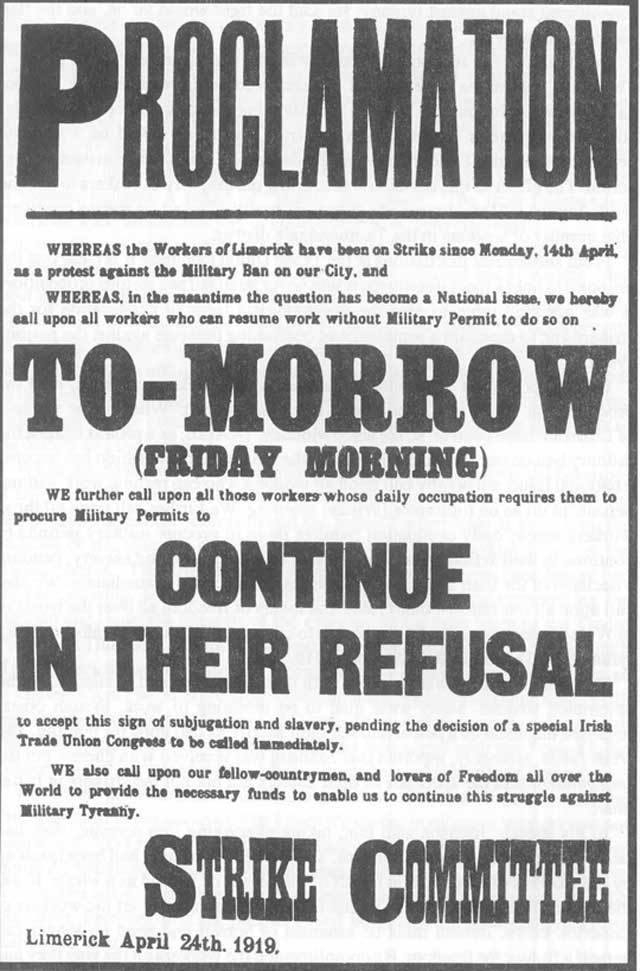 In Drogheda the Trades Council on receiving the warning from the police re Red Flag, decided to hold no celebration. The I.T. and G.W. Union members insisted on celebrating Labor Day, and they held a most successful demonstration at which the Red Flag was prominently displayed. Ballyclough workers marched to Mallow to take part in Labor Day demonstration, a distance of twenty miles. Cappoquin reports that Labor Day was a great success. As a result “Labor advanced to a solid position in the weak spots.”
