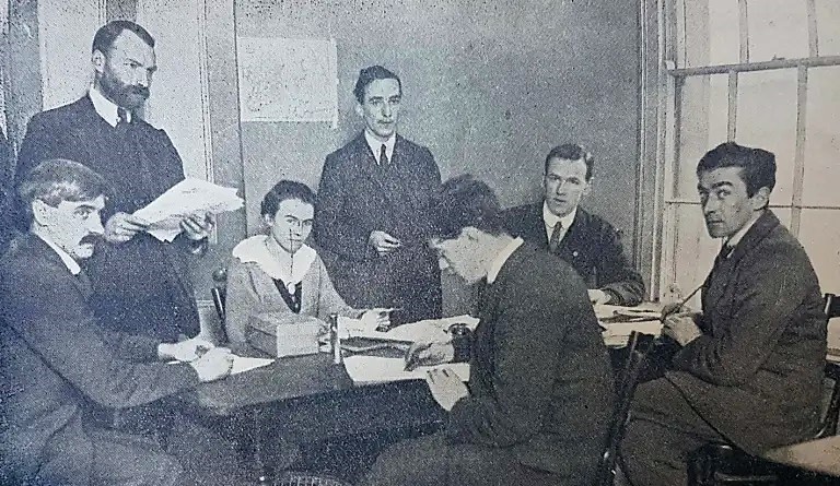 In one place in Co. Dublin the speaker turned the police warning into ridicule. Immediately after being warned by the police not to carry the Red Flag he mounted the platform and holding the Red Flag in his hand said, “The police object to me carrying the Red Flag. Well, I’ve carried a red head for over twenty years and nobody has ever objected to it.”