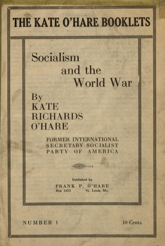 Socialism and the World War by Kate Richards O’Hare Former International Secretary of the Socialist Party of America. Published by Frank P. O’Hare. St Louis, 1919.