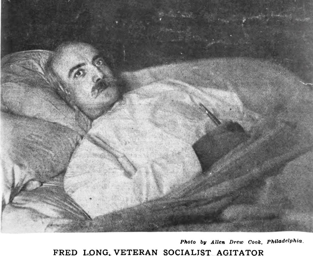 Fred still remains with us. He is broken in body, his magnificent, powerful voice may no longer resound through our council chambers. Those who would commune with him must gather at his bed side, as the youth of ancient days gathered about the feet of Socrates and Jesus. The warrior in him has been tempered by the philosopher. No one can read Bobby Burns and Mr. Dooley with such relish as he can. He is keenly sensitive to all that is going on in contemporary thought. He understands the labor and Socialist movements in their many ramifications. His unusually well-stored mind is fertile with suggestions for cartoons, editorials and tactical measures. He has the same glowing optimism he had when as a stripling, thirty-four years ago, he joined the labor movement. He has struck many a spark from the anvil of truth and carried on high the torch of knowledge, of solidarity, of revolution. He has translated the language of Socialist theory into the American vernacular; he has fashioned the profoundest of Socialist principles into terms of American usage, in spirit with the psychology of the American people. His years have been well spent. He smiles upon death.