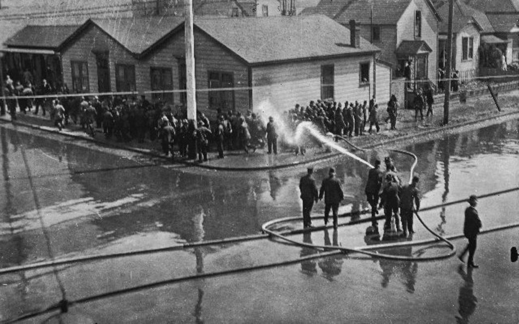 9:30—About six men were standing outside of the hall when down came two police in plain clothes, passed by four of us who were standing on the corner and stopped in front of one man and demanded to know what that s— of a b— was standing there for and started to pump lead as fast as they could get it out of the guns.