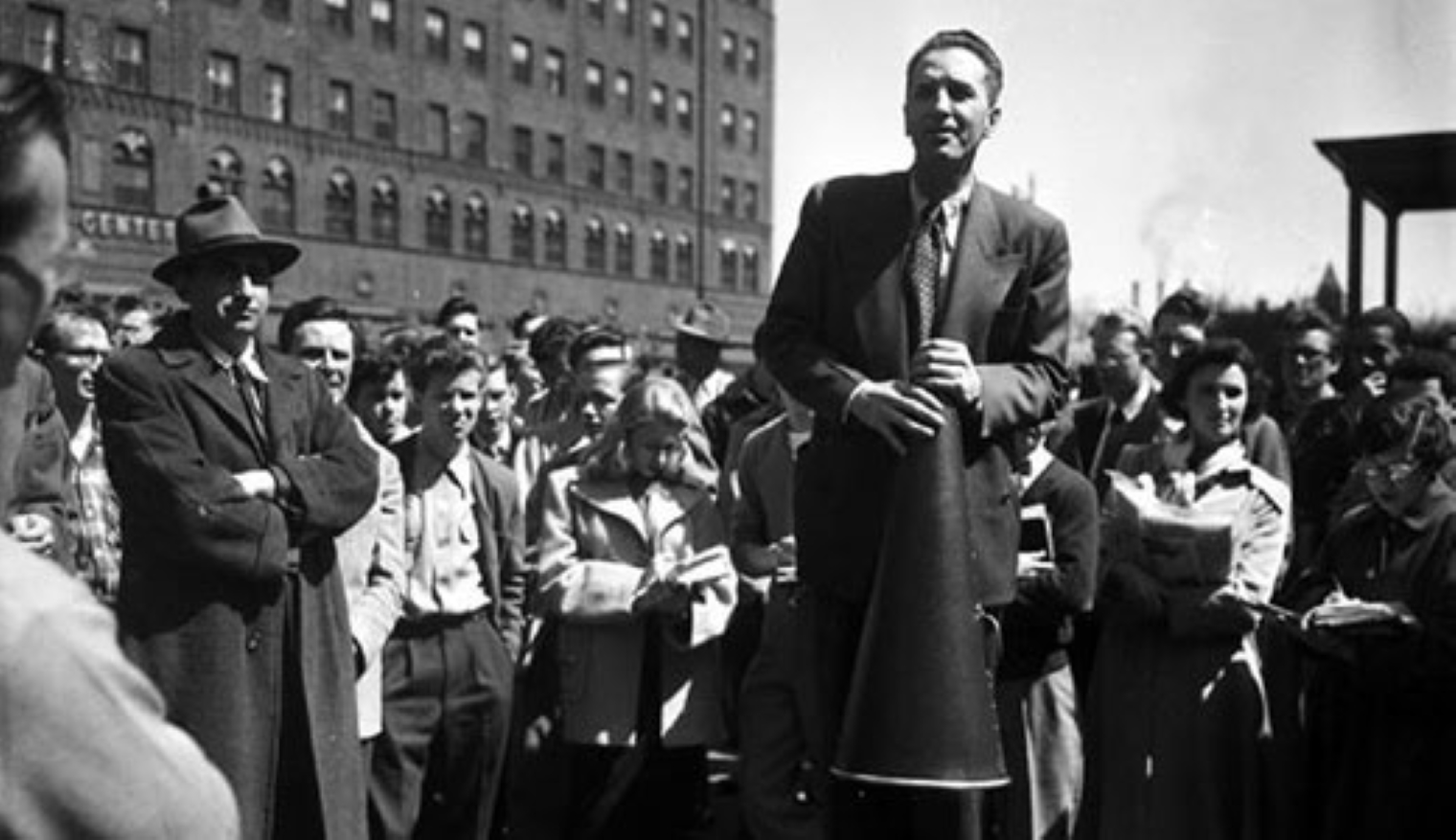 In the summer of 1934, when Governor Olson’s national guards were on the streets of Minneapolis, were turning loose the trucks with military permits, were breaking our strike, raiding our strike headquarters, arresting our leaders and our pickets, Grant more than any other person helped turn the tide of battle. He appeared before the governor and before the colonels, forcing the release of the arrested union leaders, forcing the guardsmen to evacuate the union headquarters.