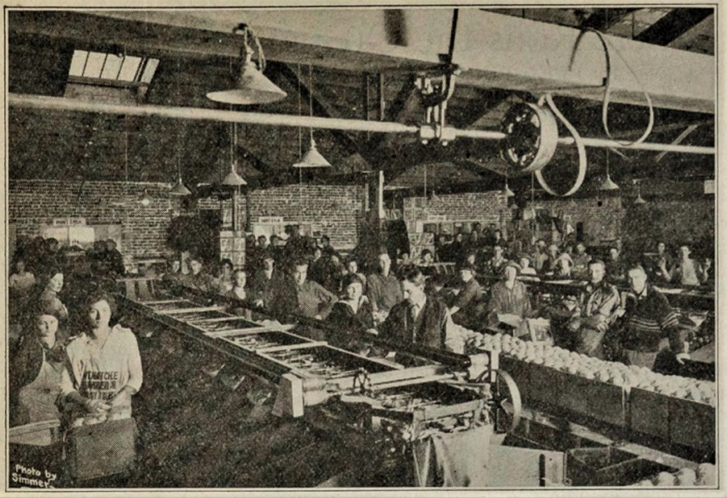 All work is done on a ten hour day basis for workers employed by the day. But on piece work the pickers pick from daylight to dark and the packers work from ten to fourteen hours. Even the nailing on of the lids and making of boxes is piece work. Picking is mostly paid for at the rate of five cents per bushel box and this proves a great incentive to the unthinking workers, who set a speed that they themselves cannot even maintain. If a worker picking in good sized apples can earn what is considered a living wage, then the ones picking small fruit will be paid at the same rate. The workers who work at the highest rate of speed, for the longest number of hours act as a plumb bob for the owners when they meet to set the rate of pay for all workers employed by them. Many workers object to doing two men’s work, when there are men who cannot find jobs, while others find it impossible to turn out a large amount of work on account of their mind’s being bothered about union men being in jail for organization activities.
