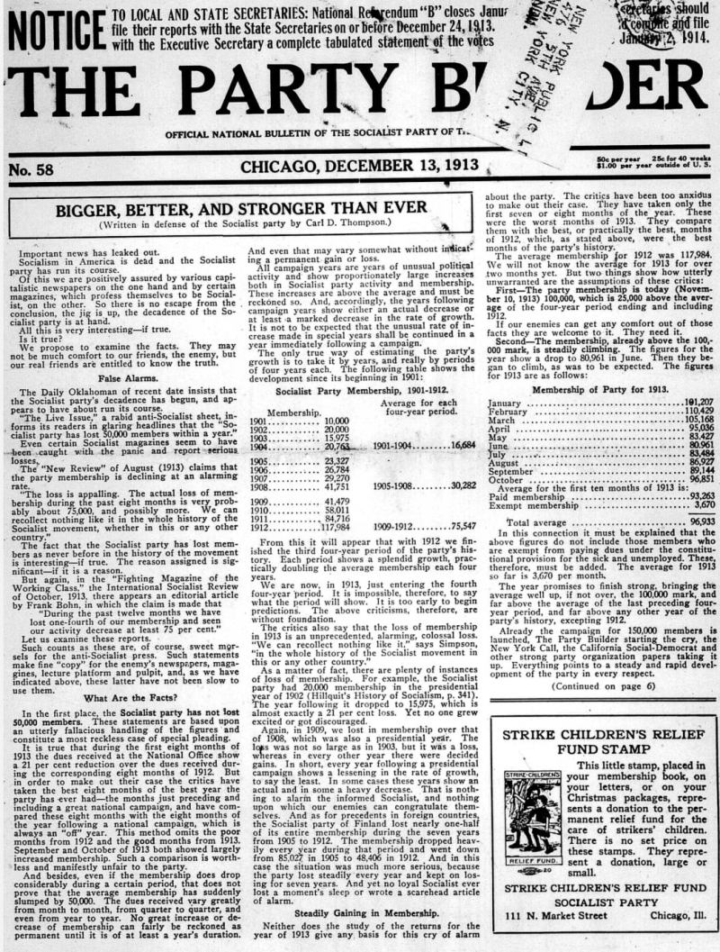 The Party Builder. Official National Bulletin of the Socialist Party. No. 58. December 13, 1913.