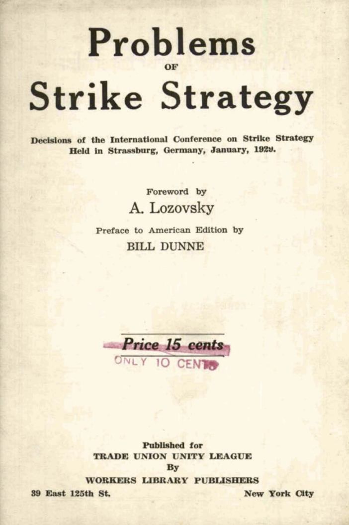 Problems of Strike Strategy. Published for the Trade Union Unity League by Workers Library Publishers, New York. 1929.