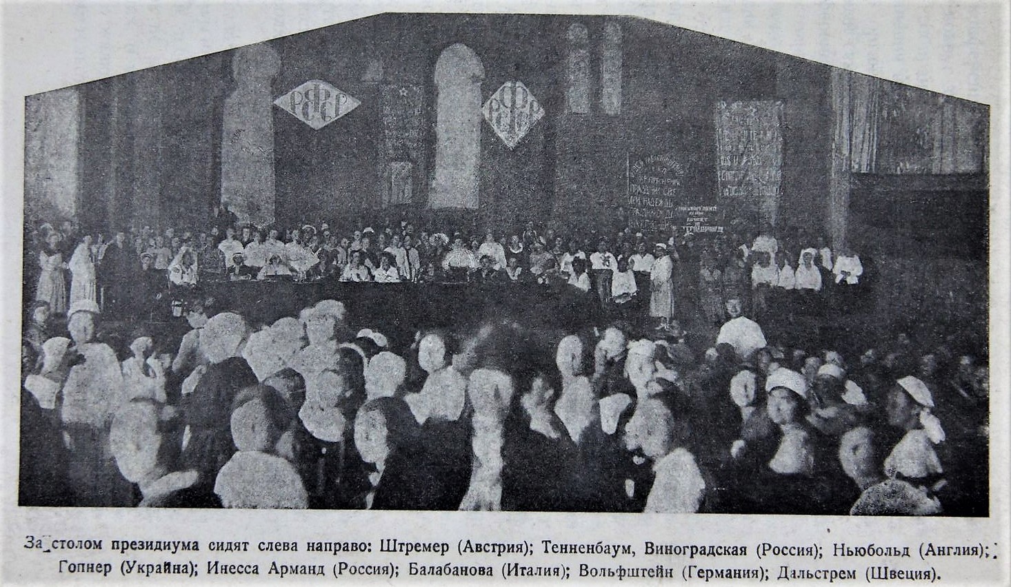 This theses was worked out in the months before the Comintern meeting by the Women’s International Secretariat of the International; Clara Zetkin, Hertha Sturm, Lucie Colliard, Alexandra Kollontai, Zlata Lilina (wife of Zinoviev), and Varvara Kasparova and debated at the 2nd International Communist Women’s Congress, attended by 82 delegates from 28 countries. Other participants in the Secretariat included Krupsakaya, Rose Bloch, and Henrietta Holt. Presented in a marvelous speech by Zetkin, this theses was Adopted at the 20th Session of the Third Congress of the Communist International held in Moscow on July 8th, 1921.