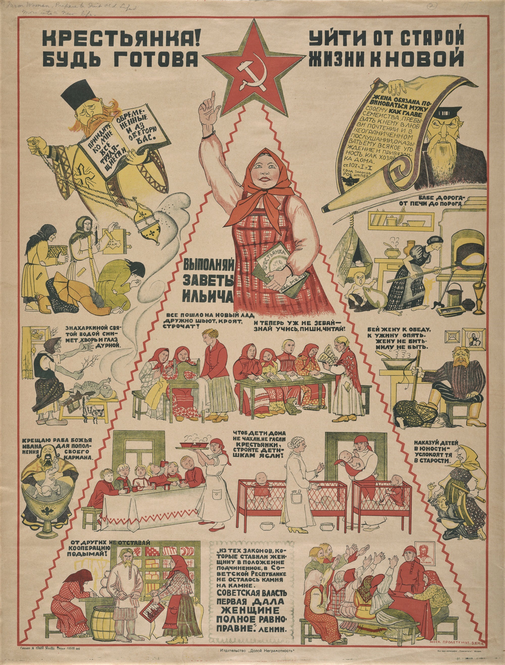 Women’s sections must help strengthen the entire network of social institutions (public orphanages, laundries, repair shops, communal residences, institutions for social care) that provide new Communist foundations for everyday life, ease the hardships women experience during this transition period, promote women’s economic independence, and transform the slave of the home and family into a free partner in creating new forms of living.