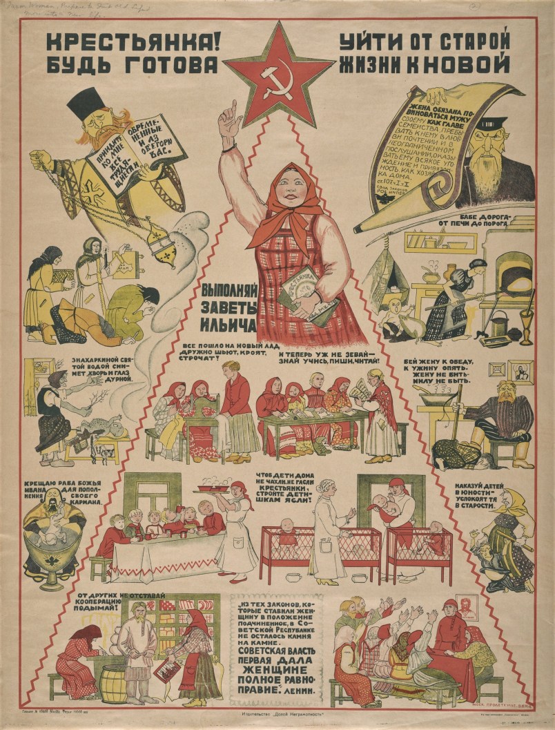 In the soviet countries, sections should work together with the party to promote the transition from a precapitalist economy to a collective mode of production. Working women should be convinced through practical experience that the domestic economy and previous family relationships enslave them, while collective labour will liberate them. The women’s sections working among the peoples of the East in Soviet Russia should see to it that Soviet legislation – which assures women of legal equality with men and protects women’s interests – is actually observed. The sections should therefore support the appointment of women as judges and jury members.