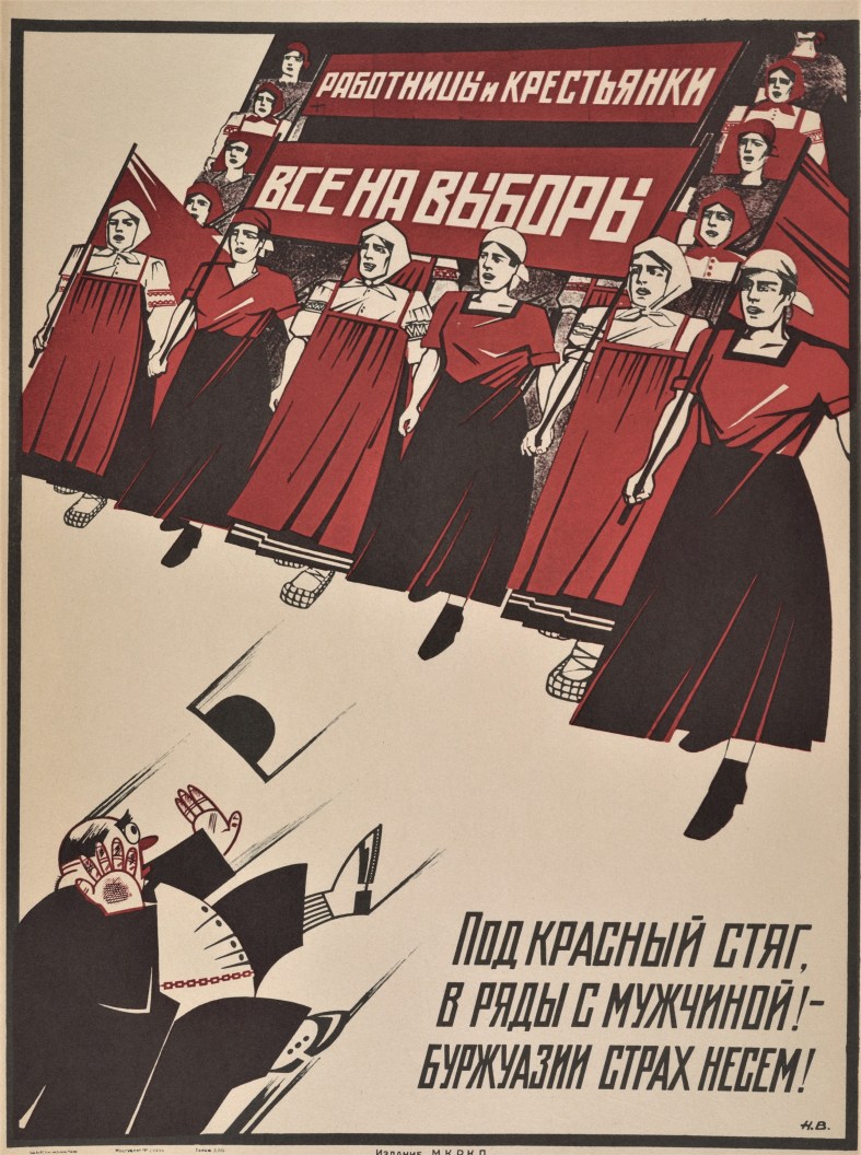 The women’s sections must take part, through their representatives and through party bodies, in the drafting of demands for new laws for the economic liberation of women and for modification of existing measures with this purpose. The sections must show particular initiative in drafting laws relating to protection of women and young people at work. Women’s sections are obliged to rally the greatest possible number of women workers and peasants for campaigns around the soviet elections and to ensure that women workers and peasants become members of the soviets and their executive committees.