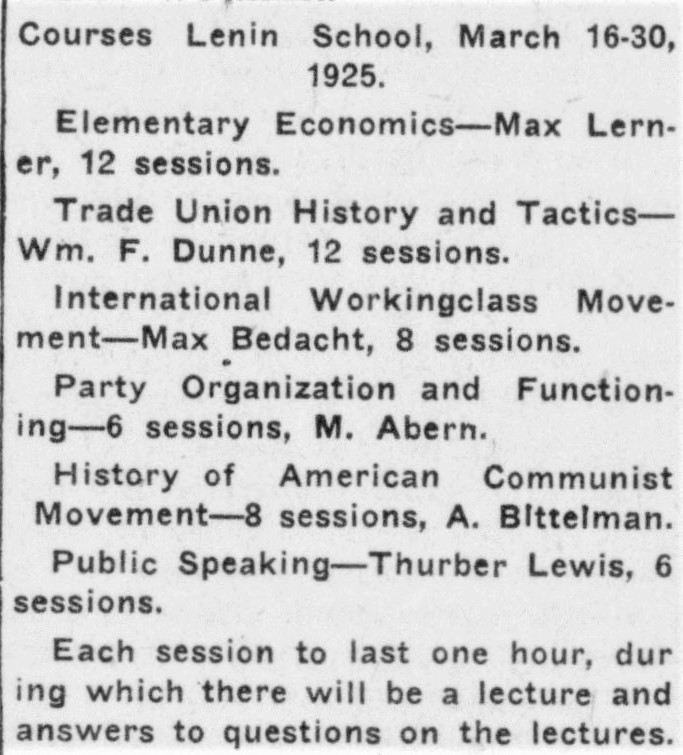 The course was well laid out and those who were assigned the task of being teachers were well prepared. The teachers were Party workers, members of the executive committee, editors of party publications and local functionaries. For them, the school meant extra work. They were required to prepare themselves and teach in addition to their already heavy duties. They did it gladly. They knew what this school meant, they knew it marked an epoch, they realized that this beginning, however humble, held out inestimable possibilities for creating the stuff out of which will come the kind of Communist Party they all want.