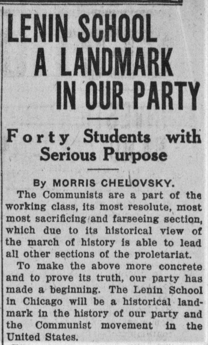 ‘The Lenin School in Chicago’ by Thurber Lewis from Workers Monthly. Vol. 4 No. 7. May, 1925.