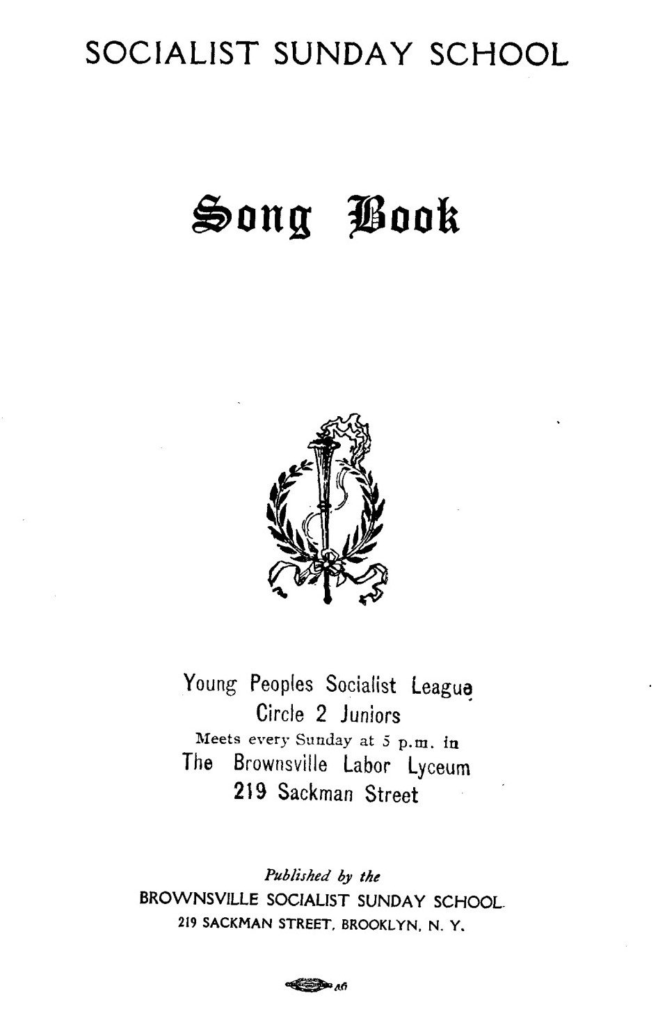 ‘Young People’s Socialist League, Circle 2 Juniors, Meets Every Sunday at 5 p.m. in The Brownsville Labor Lyceum, 219 Sackman Street, Brooklyn.’