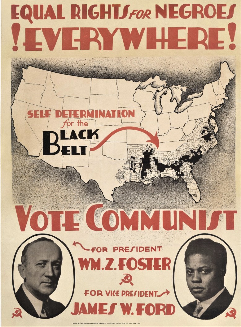 In the south, because of the existence of the Black Belt where national oppression is the sharpest, being directly connected with semi-slave exploitation and oppression of the Negro peasantry, the path of solution of the Negro question must necessarily proceed through the struggle for their right to separate. In the North the Negro question is also a national question, having its roots, in the final analysis in the position of the Negro masses in Southern agriculture. But owing to the objective conditions of the Negro masses in the North, who are in the main workers, the main historical path of development is towards assimilation. Hence our main slogan here is “Social Equality!”