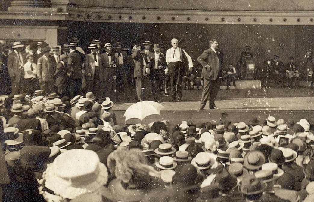 The theme for this evening is “Industrial Unionism.” For nearly two weeks there have been assembled in this hall over 2 men and women gathered in your city for the purpose of organizing, not a rival to the American Federation of Labor, not a rival to any other organization—but to organize a labor movement for the working class. Those of us who have studied conditions in this country recognize the fact that up to the launching of this organization there was not a labor organization in this country that represented the working class. (Applause). This industrial union is an organization that stands with the gates wide open to take in every man and woman, and, if necessary, child, that is working for wages with either brain or muscle. (Applause). This organization is broad enough in its scope to take in the men who works in the sewer, or our journalistic friends here on the platform who think that they are professional men. (Applause). There are a great many professional men who don’t know the difference between a professional man and a laborer. For instance—begging the pardon of the journalists—there are some scrub reporters that are working on a police assignment who imagine they are professional men working for a salary. They get about $15 a week, and are lucky at that. There are a great many skilled artisans that are getting $3.50 and $4 a day, who recognize their position as workingmen, and their remuneration, their compensation, as wages. (Applause). I simply want to demonstrate that a $3 a day hod-carrier is just as good as a $15 a week reporter, and it does not make a bit of difference whether he is a negro or a white man. (Applause). (A voice:—”As long as he is a union man”). It does not make any difference whether he is an American or a foreigner. (Applause). Although I am an American, it is no fault of mine. I am still of the opinion that an American is just as good as a foreigner as long as he behaves himself, and no longer. (Laughter.)