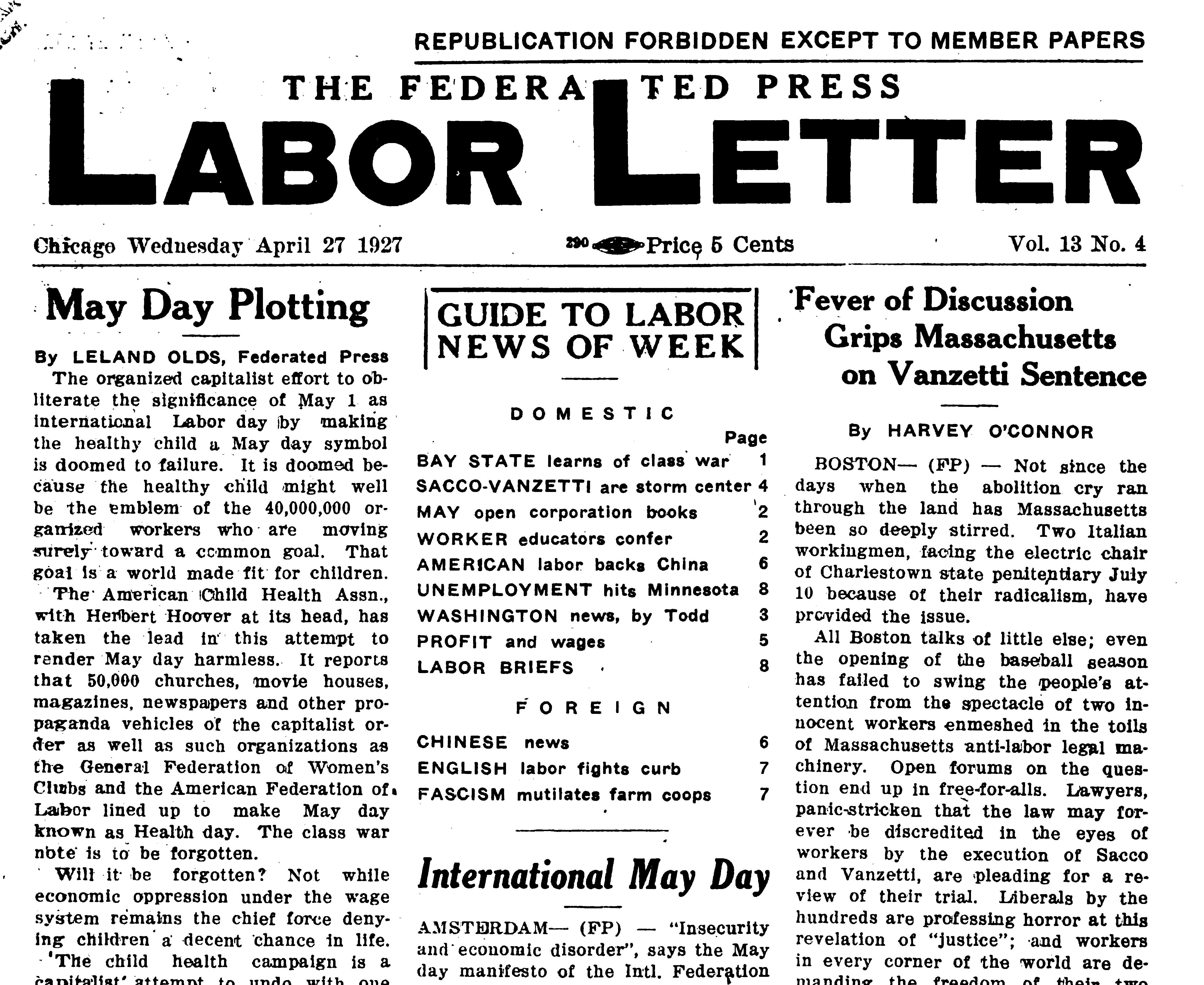 Labor Letter (Federated Press). Vol. 13 No. 4. April 27, 1927.