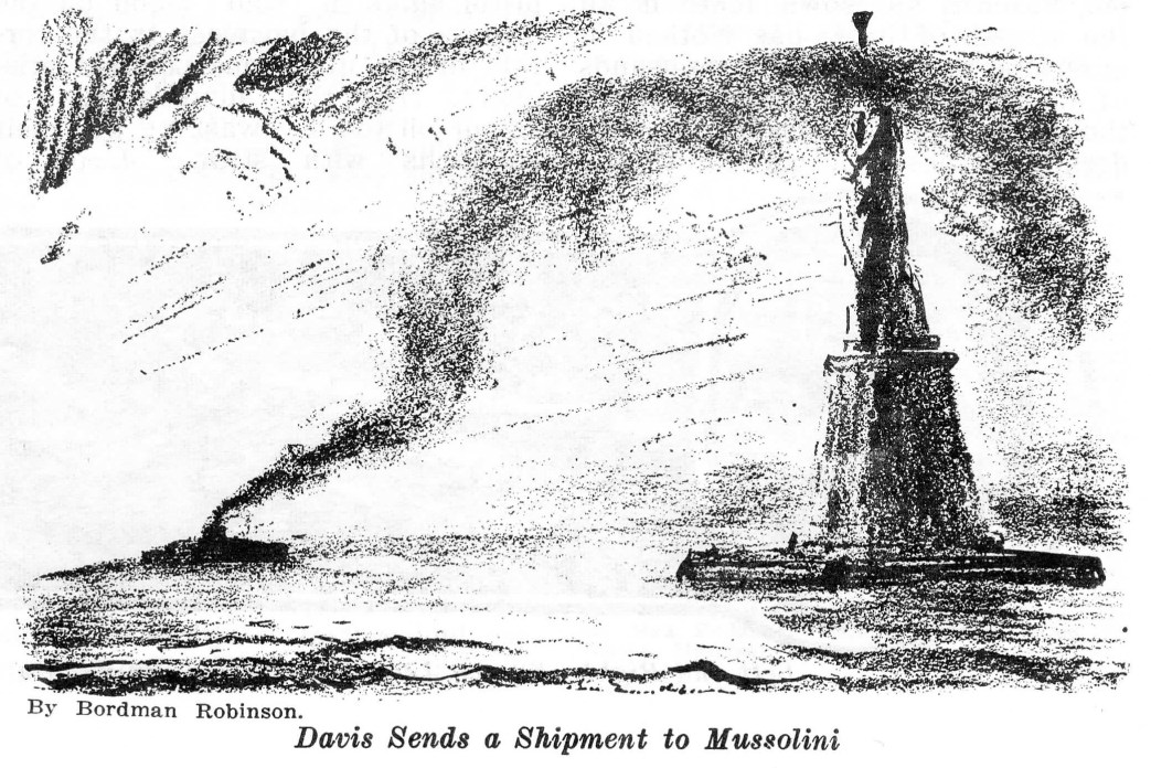 Fascist Italy is a perennial menace to the peace of all peoples. Fascism seeks to hide the stilleto which is its armor and that it wields as a challenge to all who oppose it, and immerses itself into a big swamp of lies. Fascism with its money stolen from the miserable, beaten and humiliated people of Italy seeks to present itself to the workers of the United States by means of a lying and insidious propaganda under the guise of a liberating revolutionary movement.
