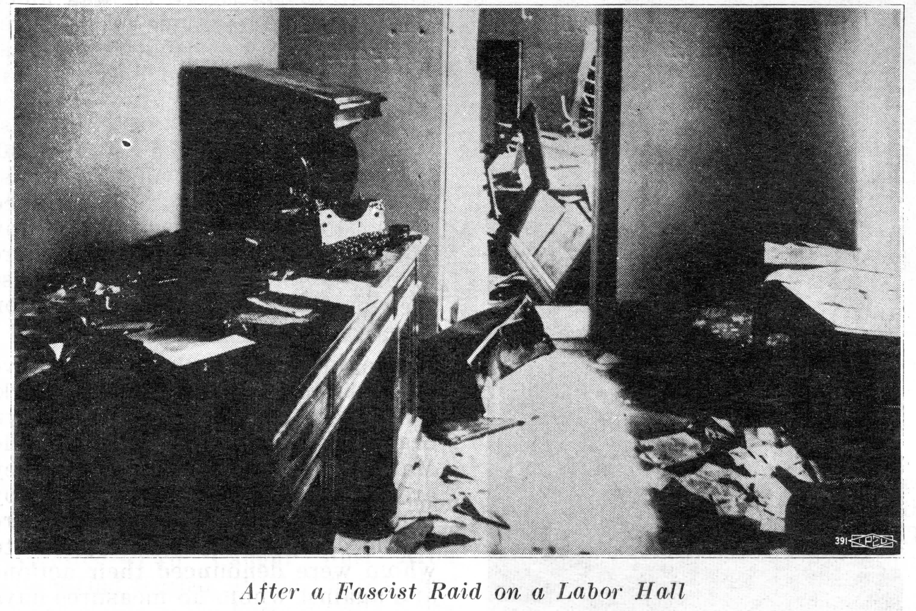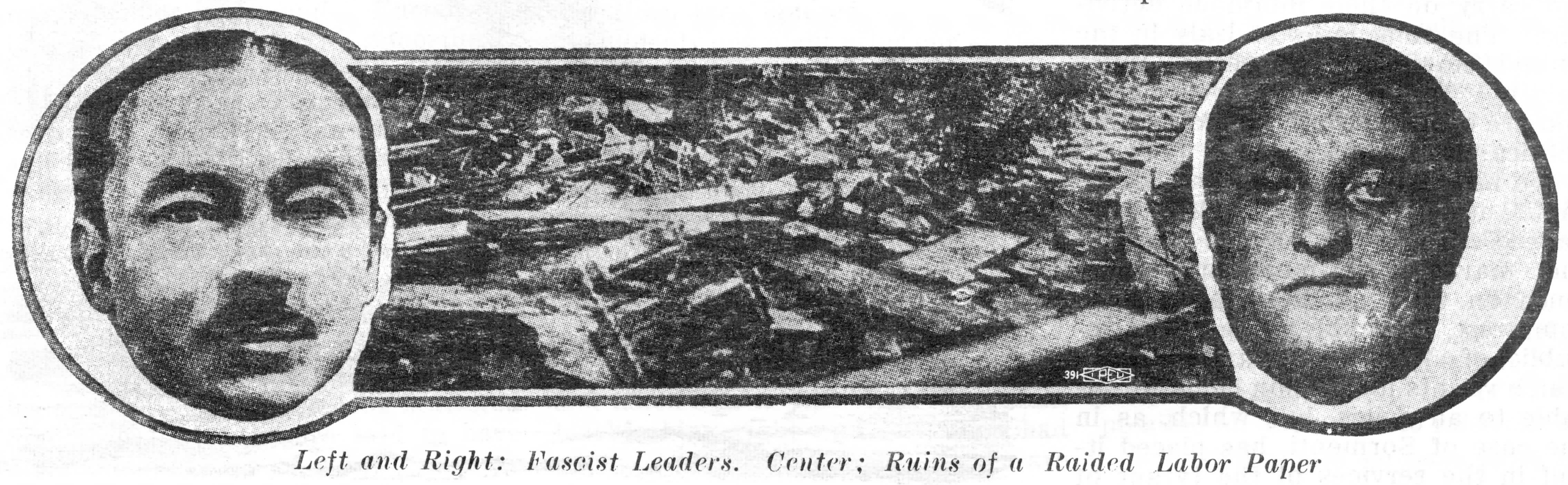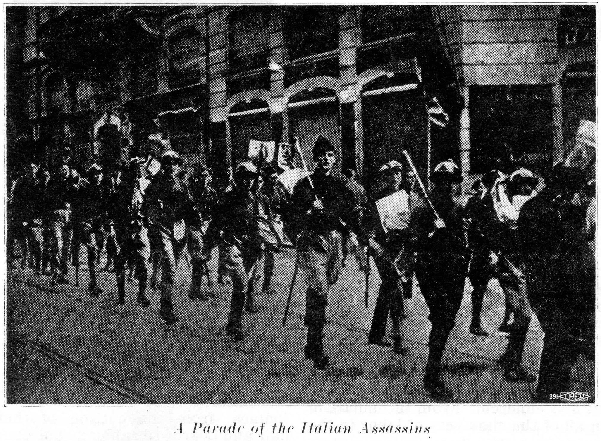 At the thought of the horrible crimes committed by Fascism, recorded history of the ignominy of the capitalist class, the blood beats violently in the temples, the heart shrinks with pain, for shame. We, the Italian proletarians, feel dishonored before the civilized world. In Italy all liberty is dead. The opposition press is suppressed. Working class organizations are dissolved; all meetings of citizens who have a view different from that professed by the assassins who are at the head of the government, are prohibited. Ostracized and brought face to face with hunger, the school teachers, doctors and lawyers who are not Fascists, make it impossible for workers to find jobs unless they are affiliated to Fascist unions which are like a straight jacket applied to the workers of Italy to suppress their revolutionary impetuousness, and to numb their conscience. Italy is an armed camp.