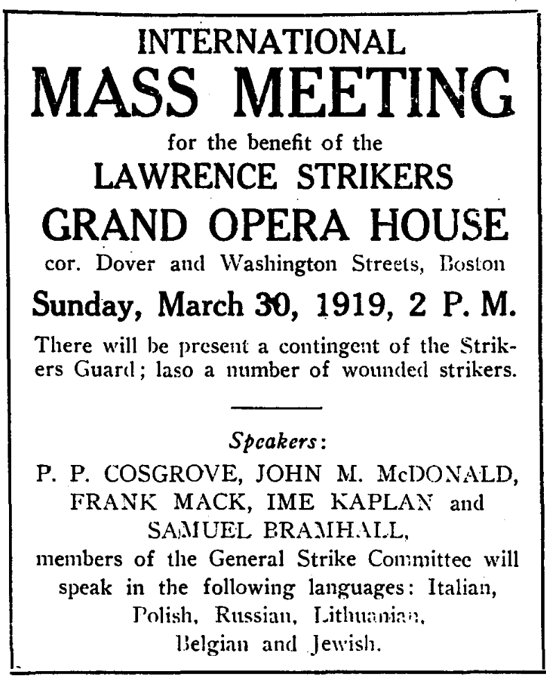 2nd- Lawrence strike resolution pledging moral and financial support to the Lawrence strikers. The resolution was accepted and a motion made that a collection be taken up. The motion was carried and a collection was made which netted $143.69: