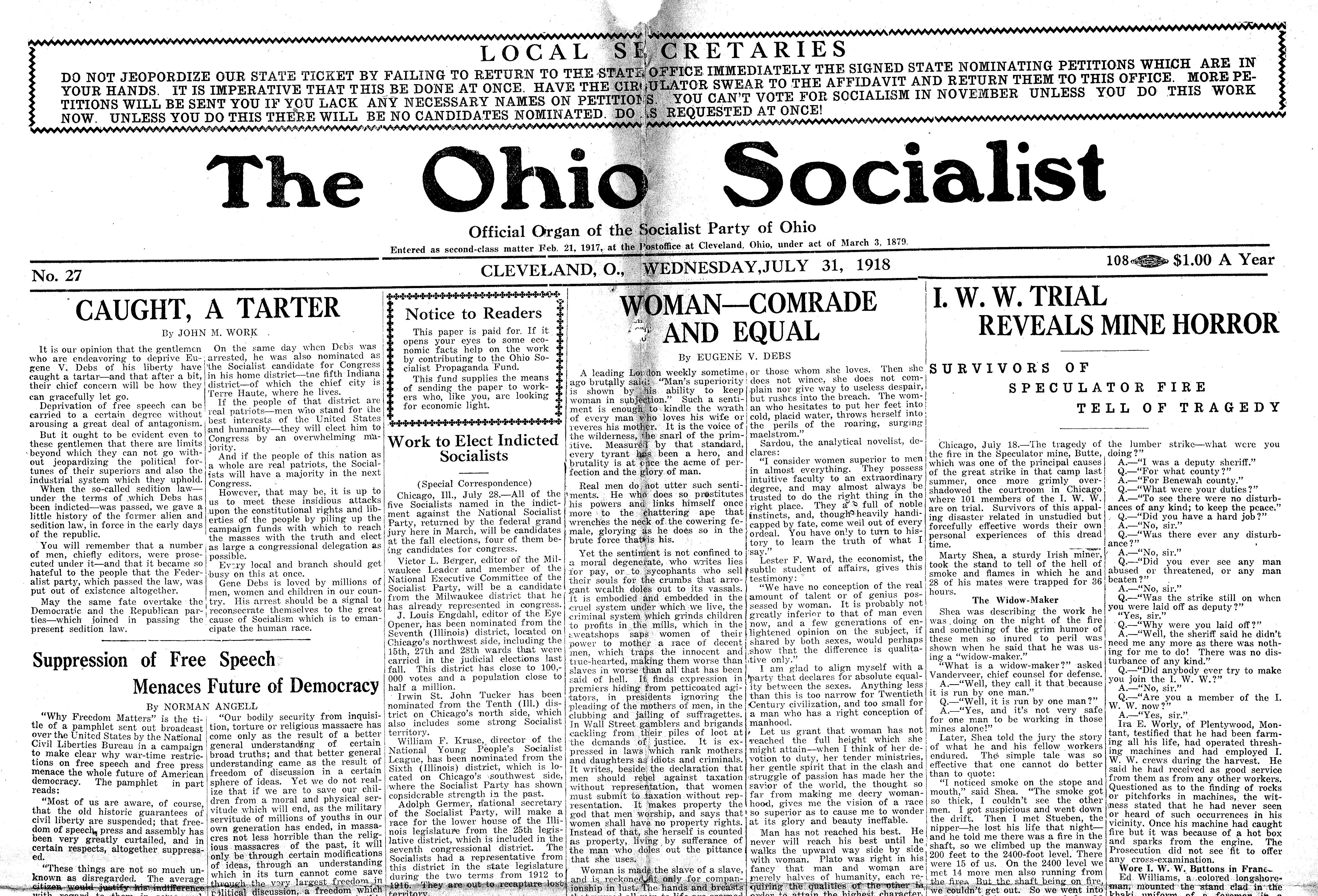 The Ohio Socialist. No. 27. July 31, 1918.