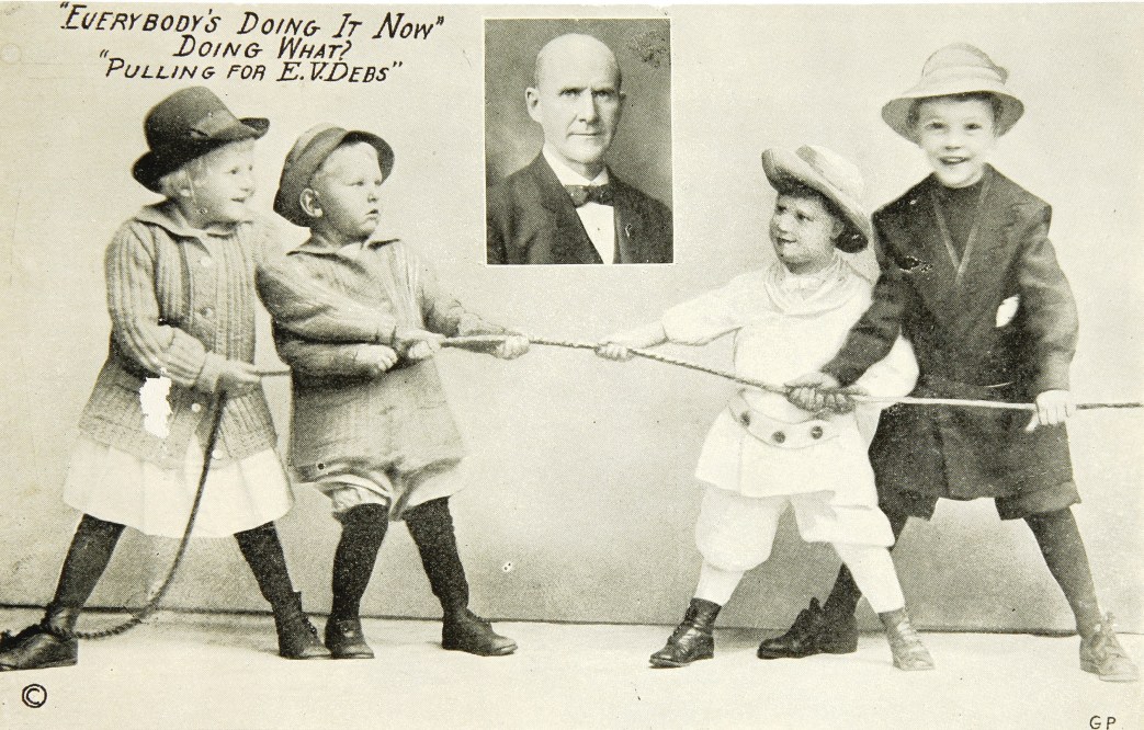 A leaflet of the 1912 Presidential campaign lovingly addressed to children from Eugene V. Debs. Debs himself was a child worker, leaving school at 14 to scrape paint from cars in Terre Haute and Indiana rail yards.