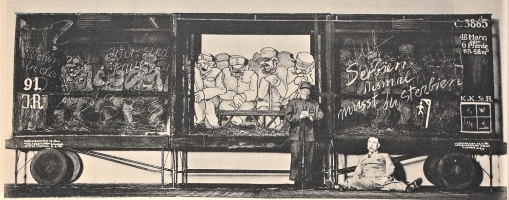 The stage was used in four different ways in my four productions, Hoppla, Rasputin , Schweik and Konjunctur. These settings were not born “of technical phantasy, searching indefatigably for ever fresh sensations.” They were guided — however strange it may seem— by the historic materialism of Karl Marx. They were Marxian productions. Both the transparent, luminous, many-storeyed stage of Hoppla and the sphere of Rasputin were used for the purpose of setting each of the different scenes in immediate relation with the actual happenings in human society and thus lifting them toward the level of history. The technical enrichment of the stage by an independent scaffolding outside of the usual area of the puppet-show stage and, as in Rasputin , extending out even into the body of the theatre was rather incidental, even accidental.