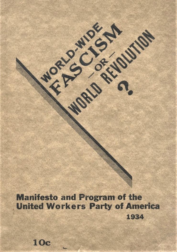 World-Wide Fascism or World Revolution? Manifesto and Program of the United Workers Party of America. Published by the United Workers Party of America, Chicago. March, 1934.