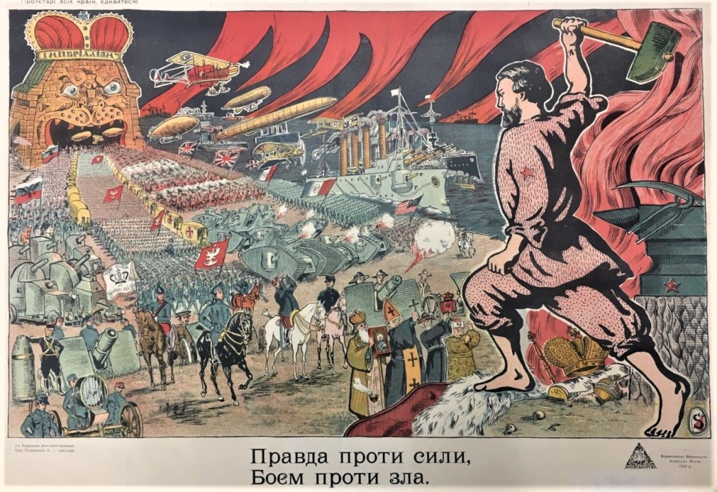 Poland is conducting the war in the name of the treasures of the Polish landowners which have now passed over into the possession of the Ukrainian peasants. Poland is fighting for the factories which formerly belonged to the Polish capitalists, but are now owned by the Soviet Republic. Poland is fighting for the restoration of the power of the capitalists and landowners in Ukraine. In this fight, the Polish lackeys of the capitalists of the world have found an aide in the person of the well-known adventurer Petlura. His bands are burning and destroying whole villages, pillaging the working people, organizing gruesome massacres of the Jews, and terrorizing the peaceful working population.