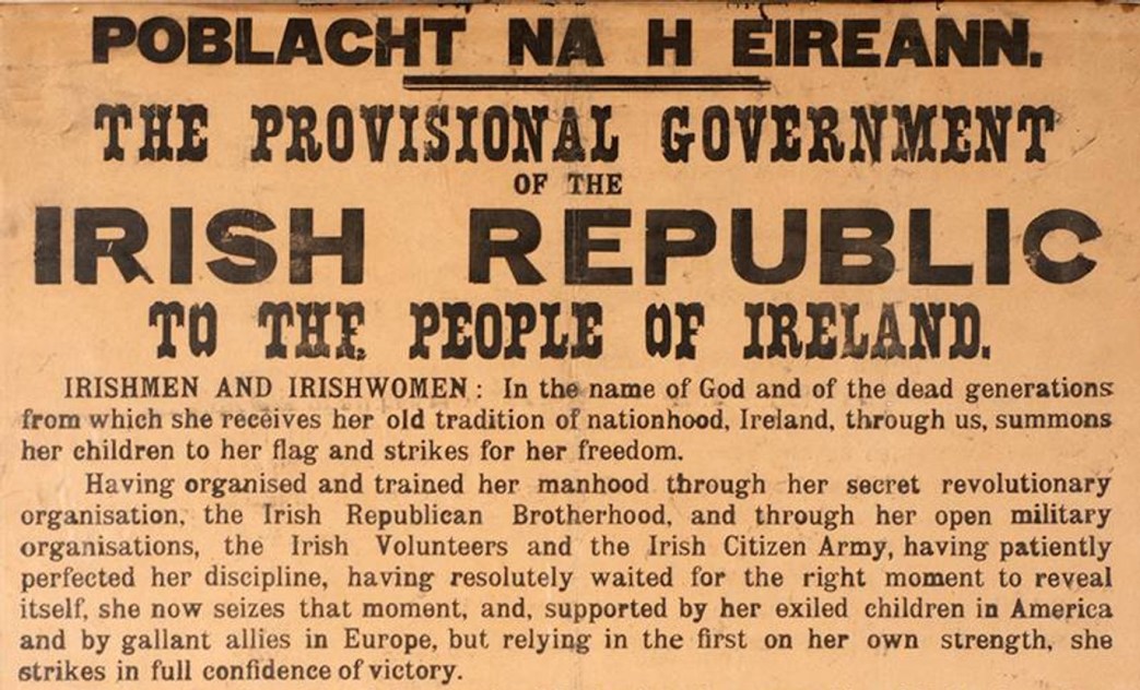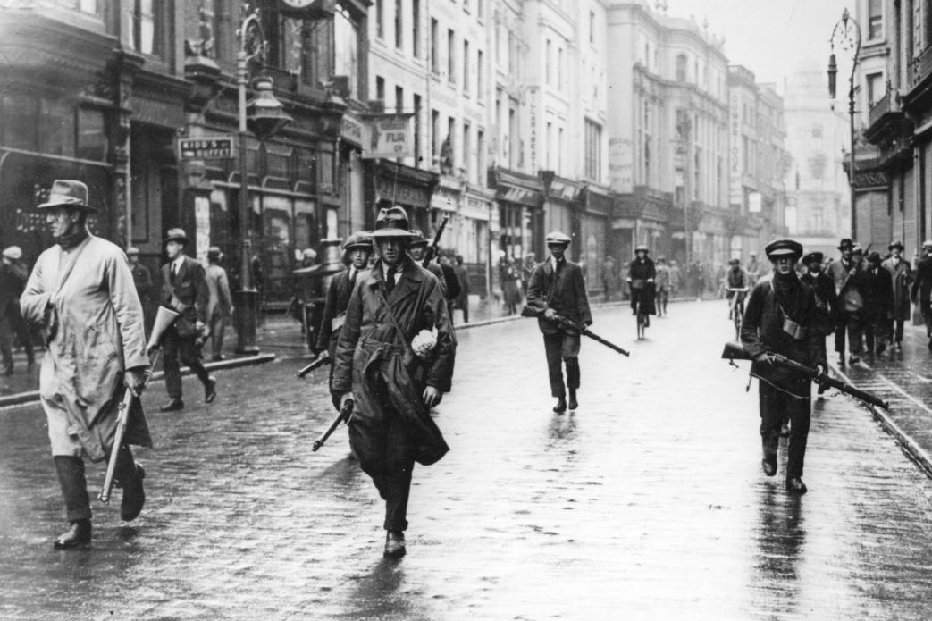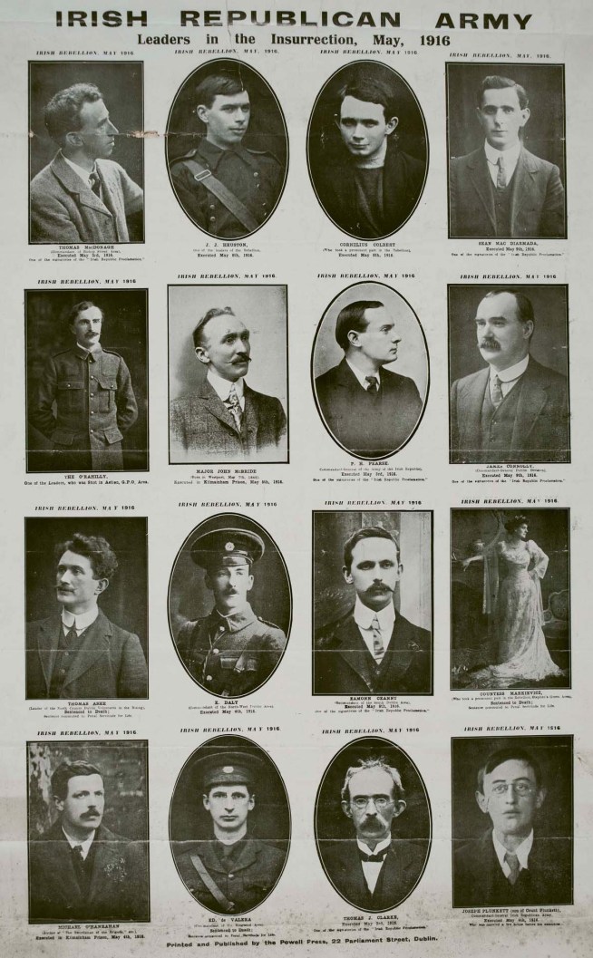 They prepared a declaration of the Irish Republic, signed by Thomas Clarke, Sean MacDiarmada, P.H. Pearse, James Connolly. Thomas MacDonagh, Eamonn Ceannt, Joseph Plunkett. About noon the next day a body of Irish volunteers marched down O’Connell Street, apparently on parade, In reality they were marching en the Post Office and they seized it. At that same moment, small detachments seized other key points in the city. A little over a thousand men, workers, and a few intellectuals at their head, had challenged the whole British Empire.