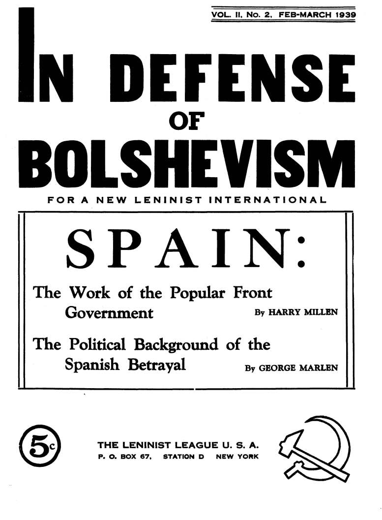 In Defense of Bolshevism (Leninist League). Vol. 2 No. 2. February-March, 1939.