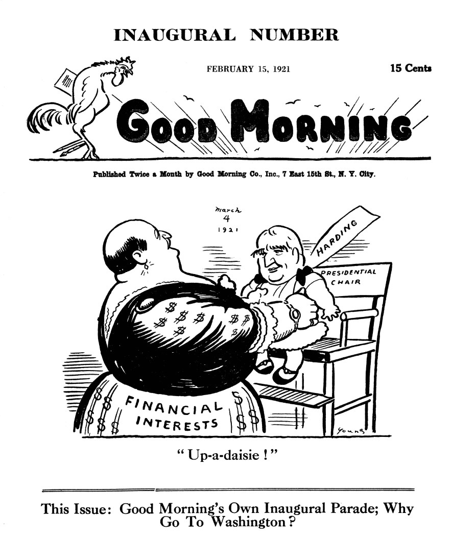 Good Morning was a (wonderful) left-wing illustrated humor magazine published bi-weekly from May 1919 until October 1921 by Ellis O. Jones and radical cartoonist Art Young. Both had worked together earlier on The Masses. Good Morning was funded by donations and was forced to decrease in frequency from weekly to semi-monthly to monthly with a press run between 4 and 10 thousand, finally folding in late 1921.