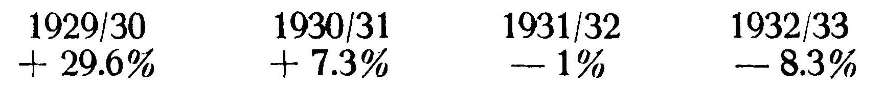 Here the entirely opposite course is taken. In 1929/30 we see a leap of almost 40%, followed however by a drop to 7 and then to 1 – finally landing at 8%. Is it not evident that this project is made without reference to the situation? What premises have permitted such an acrobatic somersault in so serious a matter as capital investment? We find not even approximately satisfactory answer to this question.
