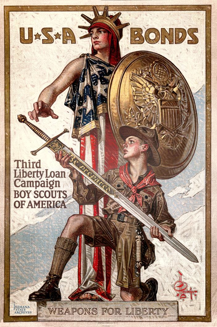 Congress permits the Boy Scouts of America to wear the uniforms of the United States Army, Navy or Marines; the Boy Scout drills are based on regulation army and navy manuals. During the war the Boy Scouts mobilized within 24 hours—for war! “Many scout officials, scoutmasters and scouts entered the army, navy or marine corps during the war…” The New York Military Training Commission recognized the military character of the Boy Scouts when it permitted the boys in that organization to be exempted from military training, “in view of the character of the work covered by the program of the Boy Scouts of America.”