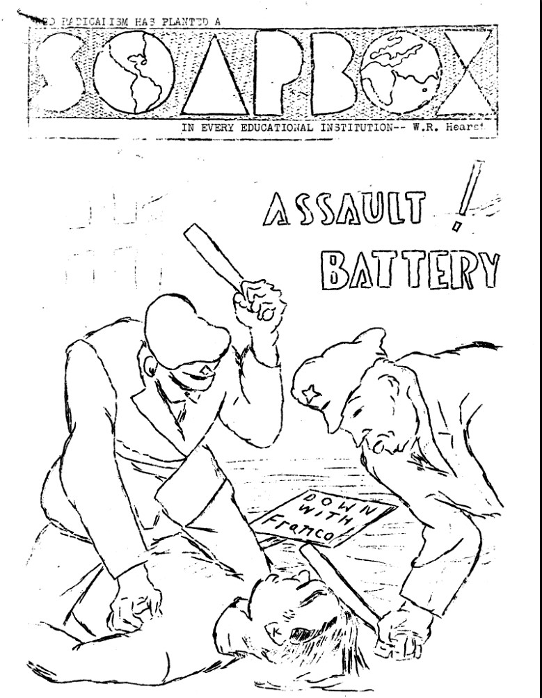 There have been a number of periodicals named ‘Soapbox’ in our history. This Soapbox was the paper of the student section of the Young People’s Socialist League of the Socialist Workers Party to use on school, college, and university campuses. Only printed in 1939, this edition is from UC Berkeley.