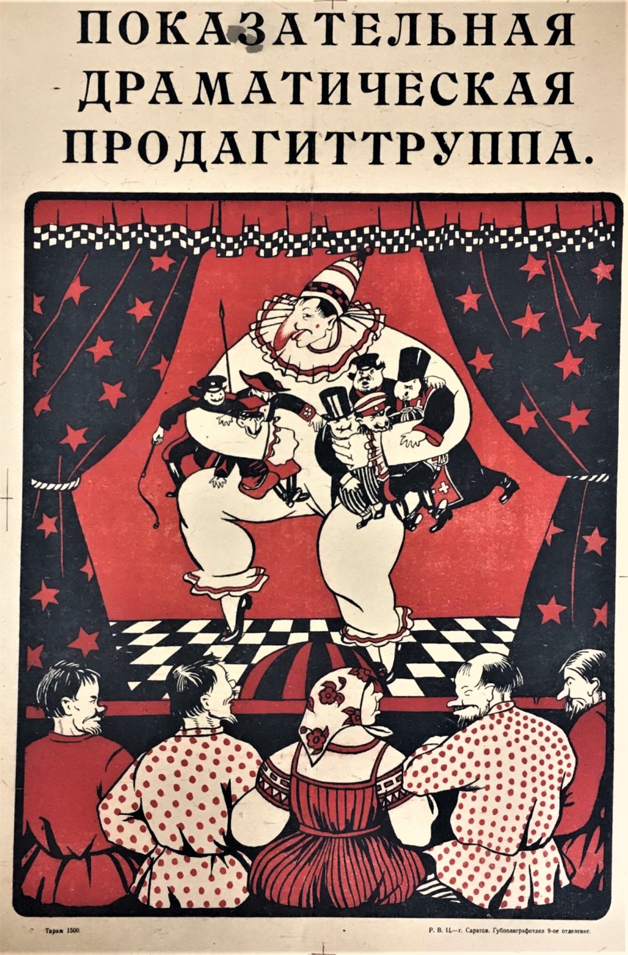 Still better is Potcher’s “Freedom.” This play the Theatrical Section recommended for performance during the “soviet propaganda day.” The State Publishing Department, at our request, pushed the publication of the play, but the book failed to make its appearance on time. However, we intend to make use of this play on other revolutionary holidays. The play possesses all the merits to make it become easily popular, especially for regional performances, performances at the front, etc. The Potcher play is written in the old revolutionary spirit and now and then French patriotism makes itself felt. However, since this patriotism originated in the fire of the Great Revolution, the patriotic sentiment may be forgiven.