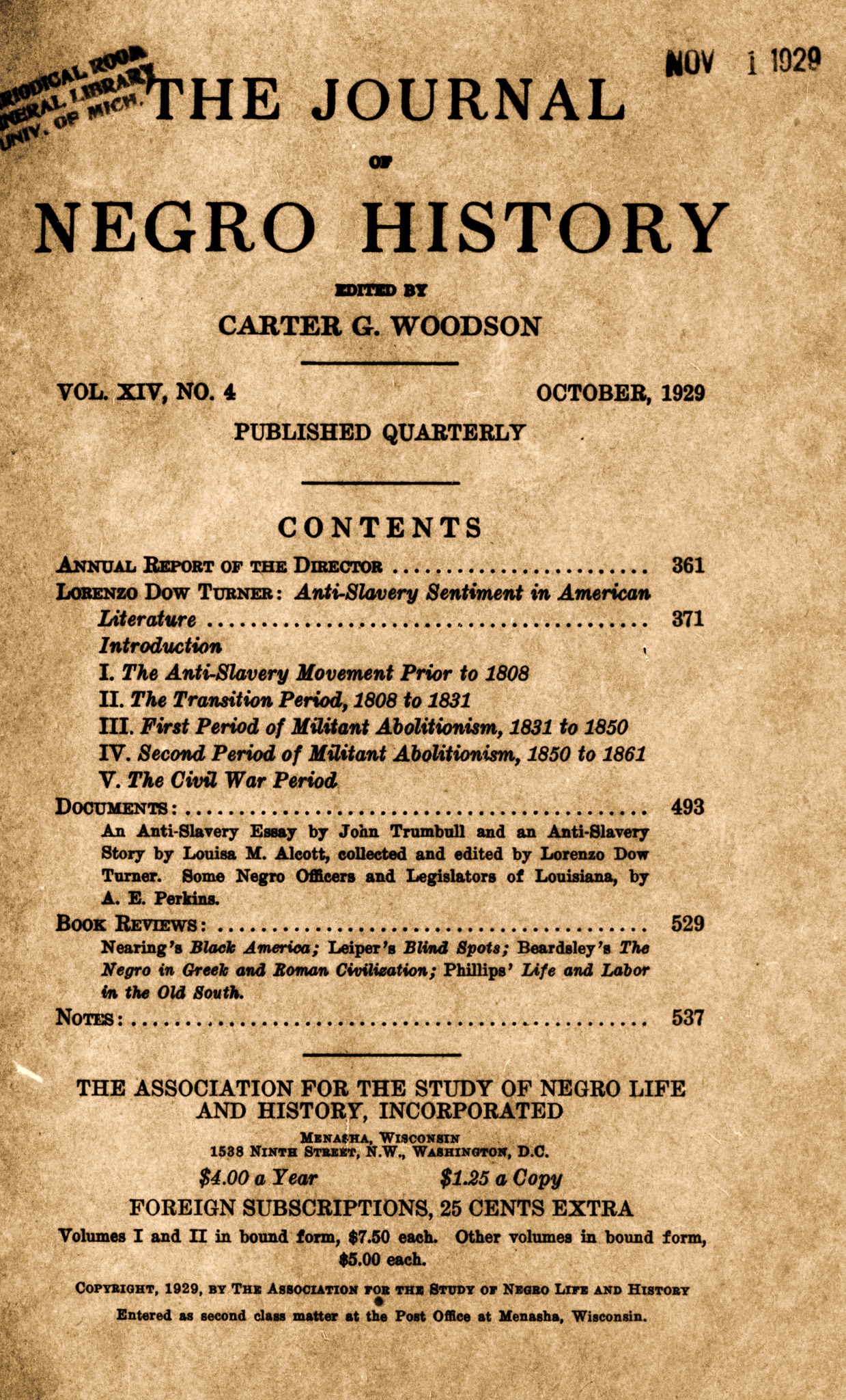 The Journal of Negro History. Vol. 14 No. 4. October, 1929.