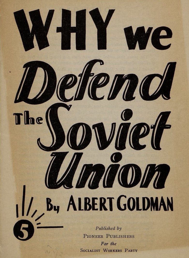Why We Defend the Soviet Union by Albert Goldman. Pioneer Publishers, New York. April, 1940.